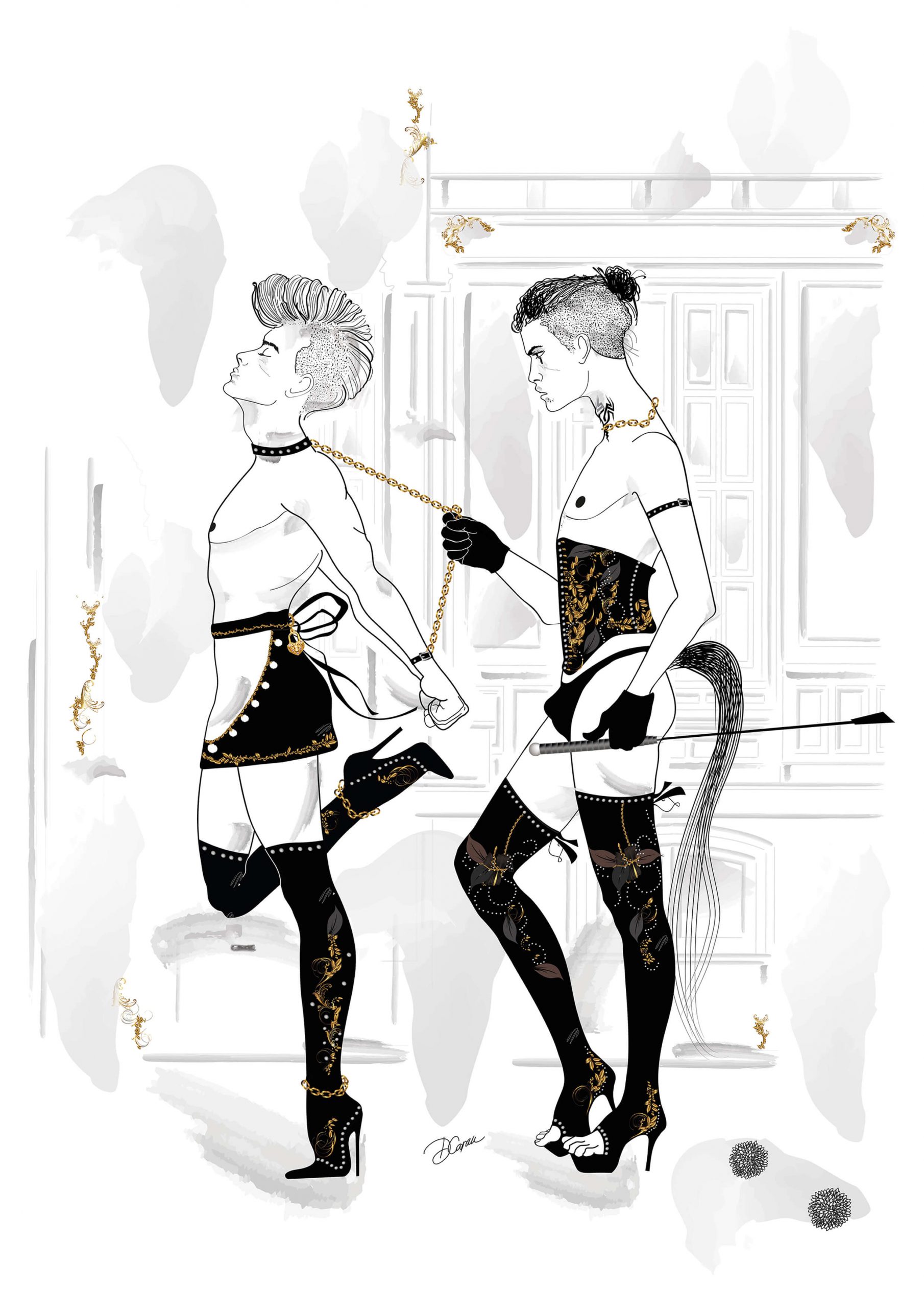 Playful illustration in bdsm style.